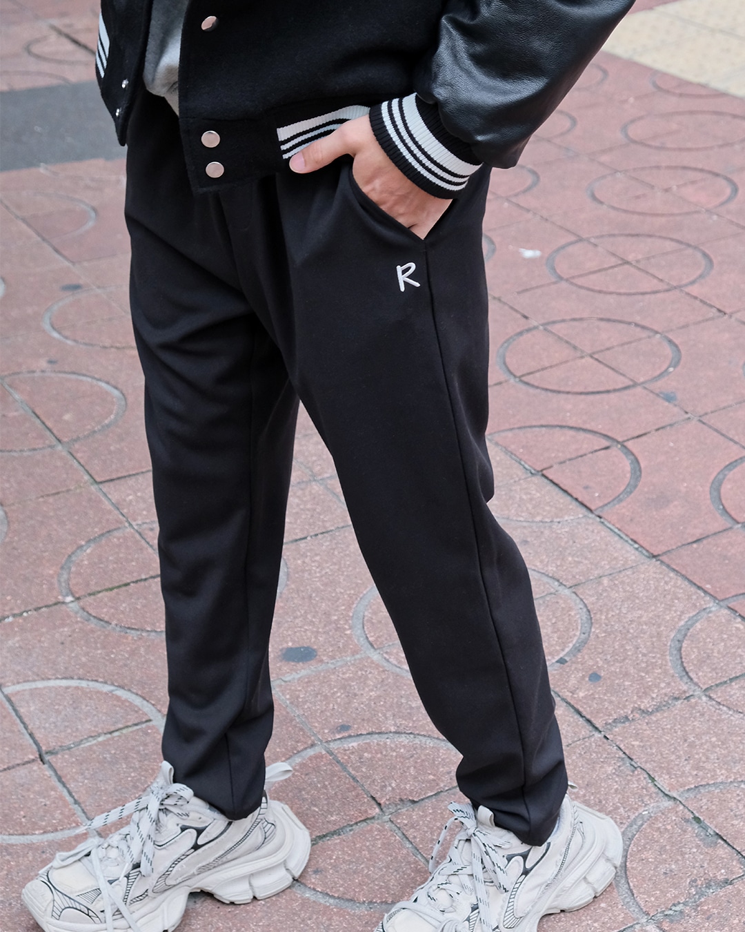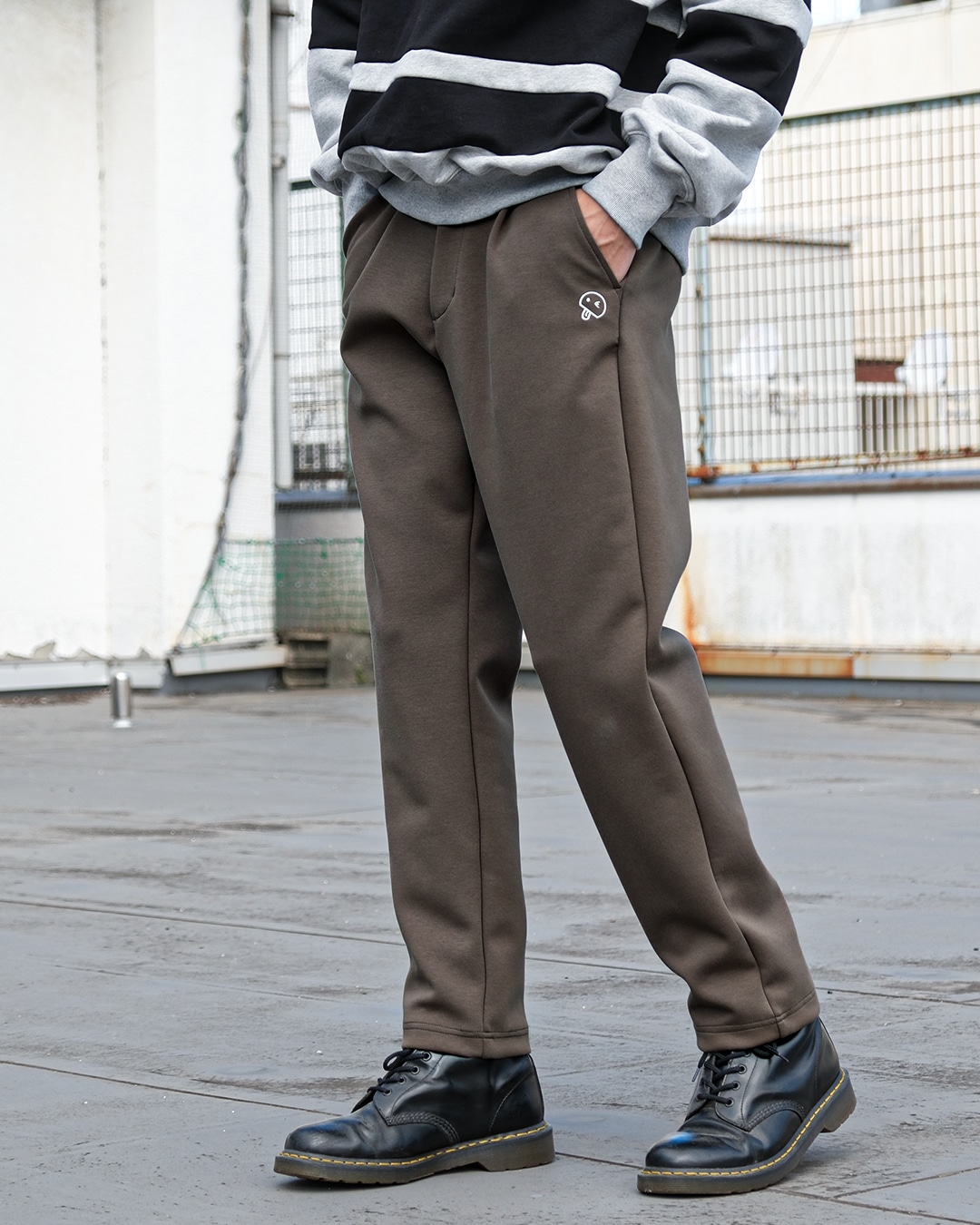 3.ジャージ素材テーパードパンツ :楽だけど、シルエットは崩したくない人向け