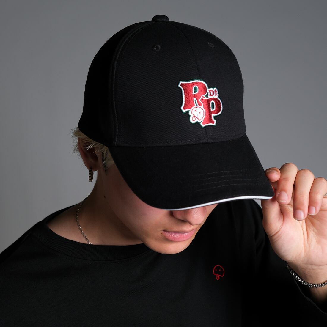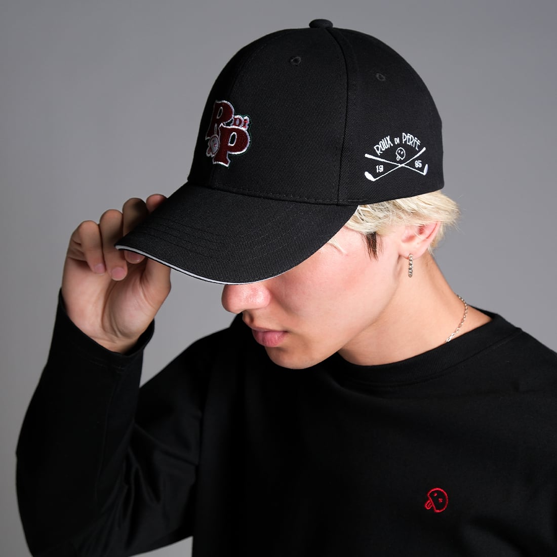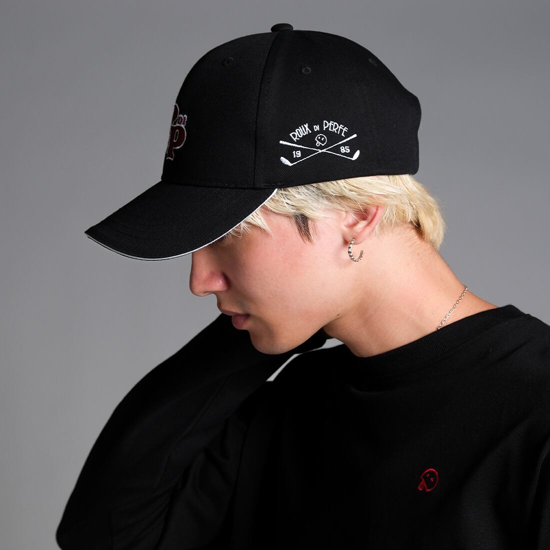 「ROUX DI PERFE」のブランドロゴとベーマークを組み合わせた、オリジナル刺繍キャップ。