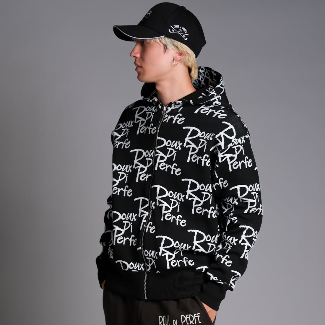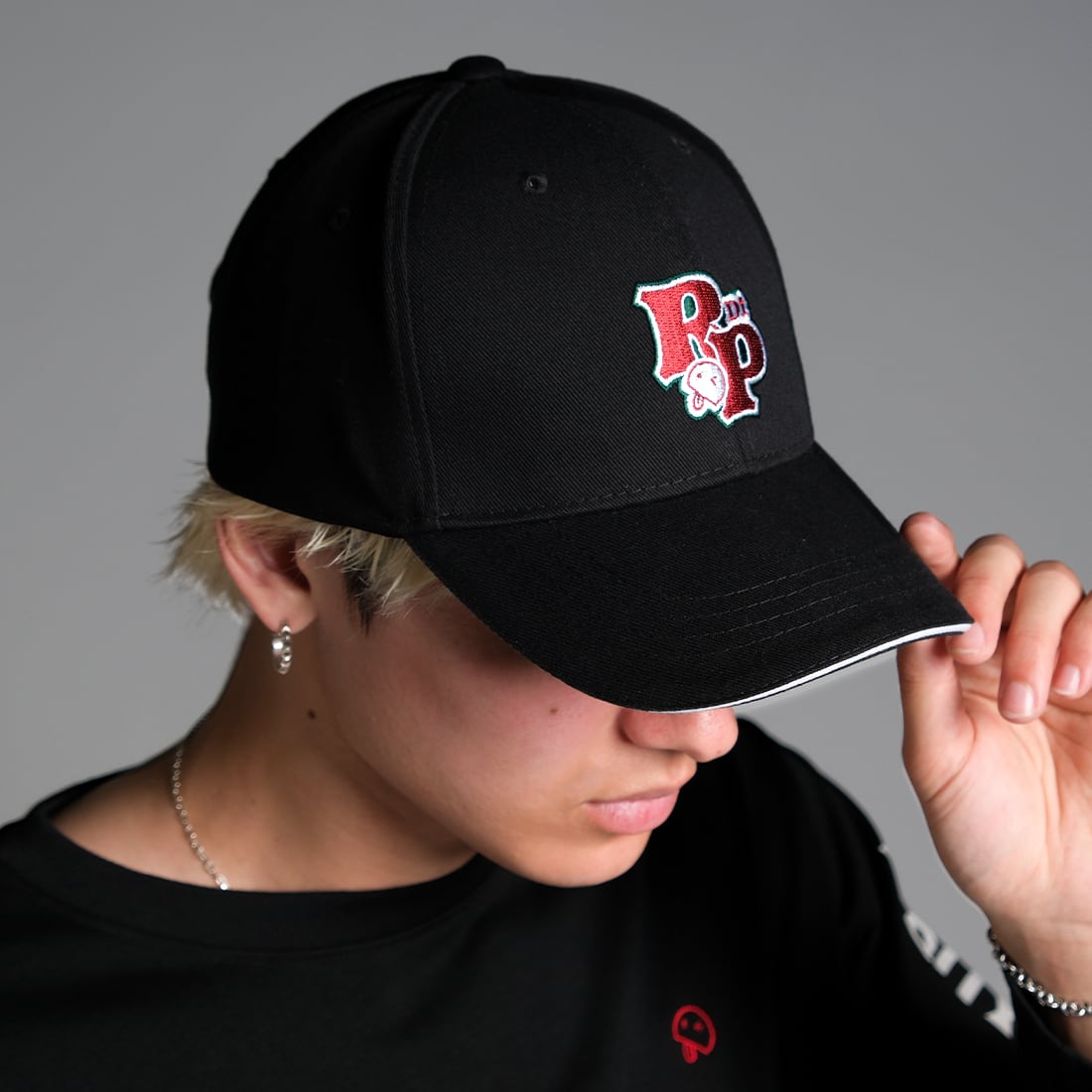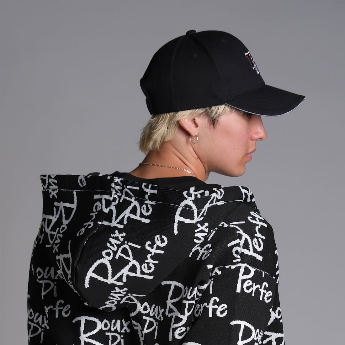 「ROUX DI PERFE」のブランドロゴとベーマークを組み合わせた、オリジナル刺繍キャップ。