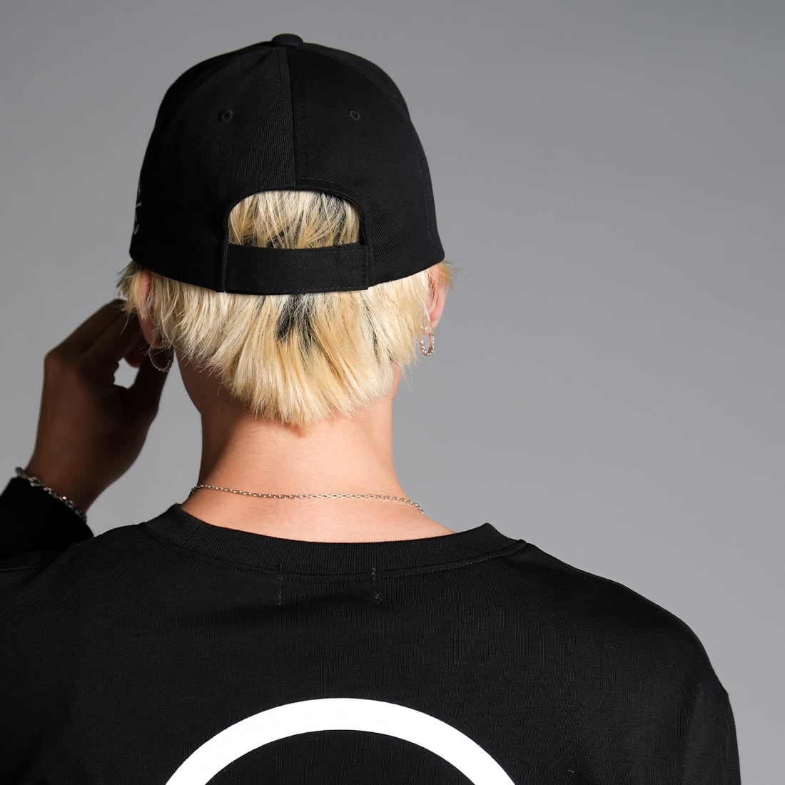 フロントは視認性の高いロゴ刺繍でまとめつつ、側面にはクロスモチーフの刺繍を配置し、