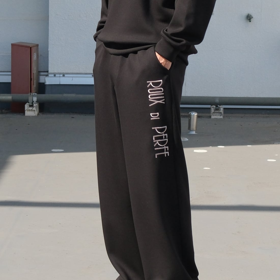 “ダンボールスウェットパンツ=リラックスウェア”という先入観をひっくり返すためのアイテム。