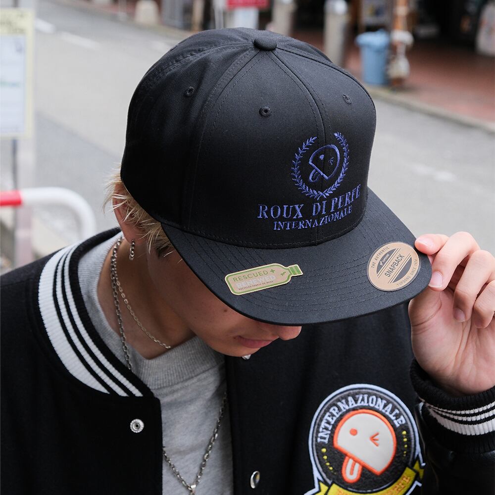 背面にはスナップバックを採用し、サイズ調整も自在。