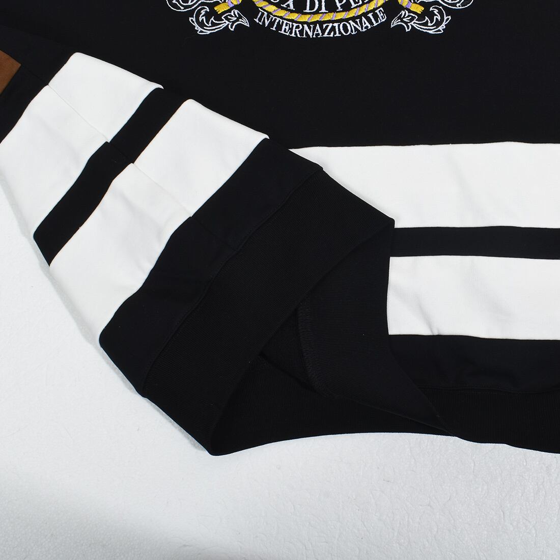 フロントにはブランドを象徴するエンブレムロゴ刺繍を大胆に配置し、