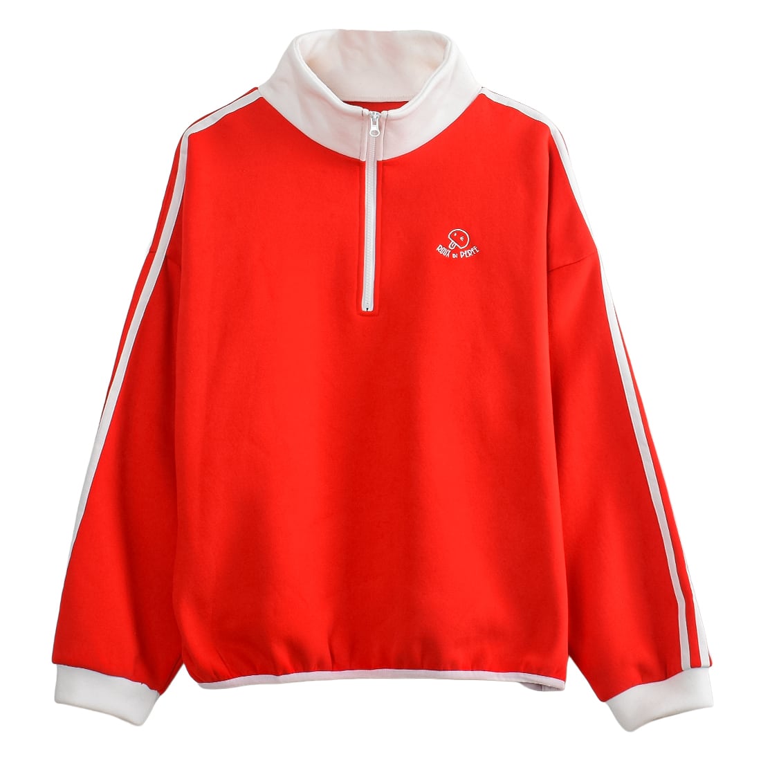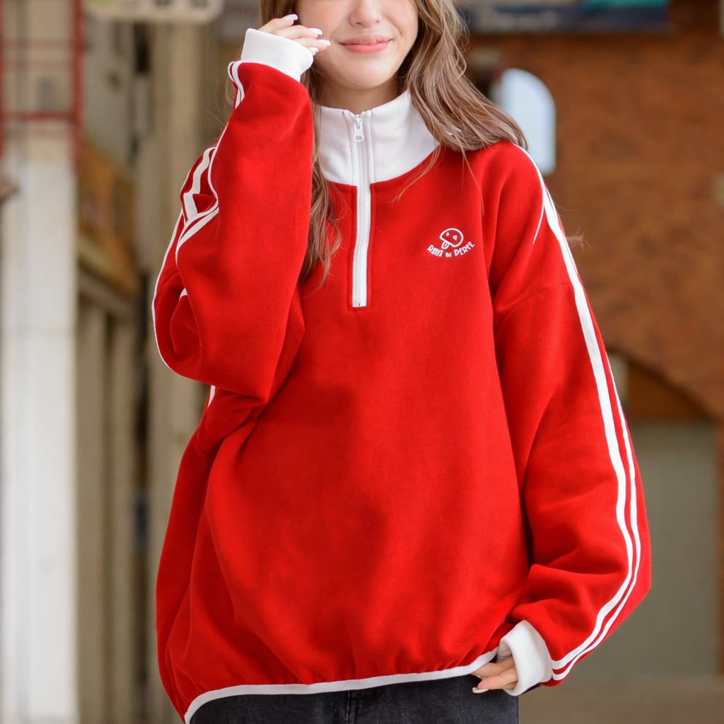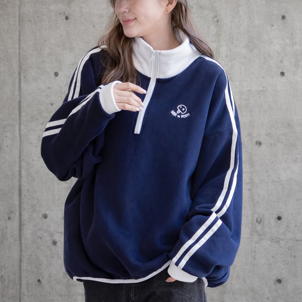 ハーフジップを少し開けてインナーを見せる着こなしもおすすめです。