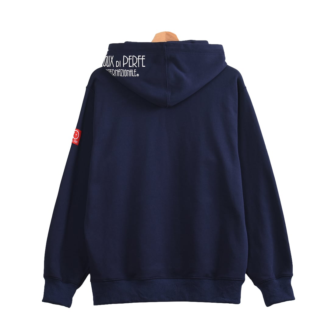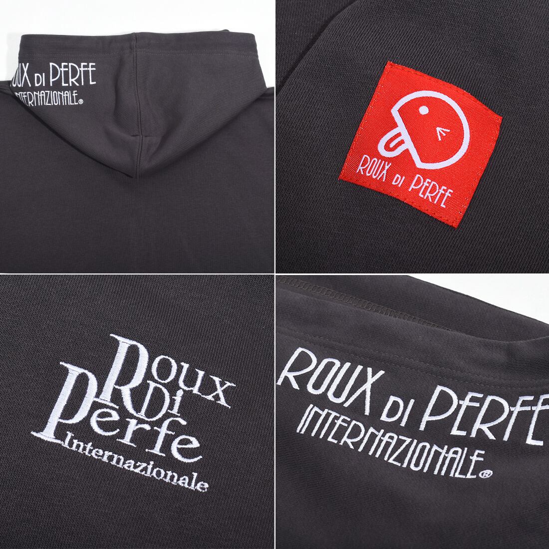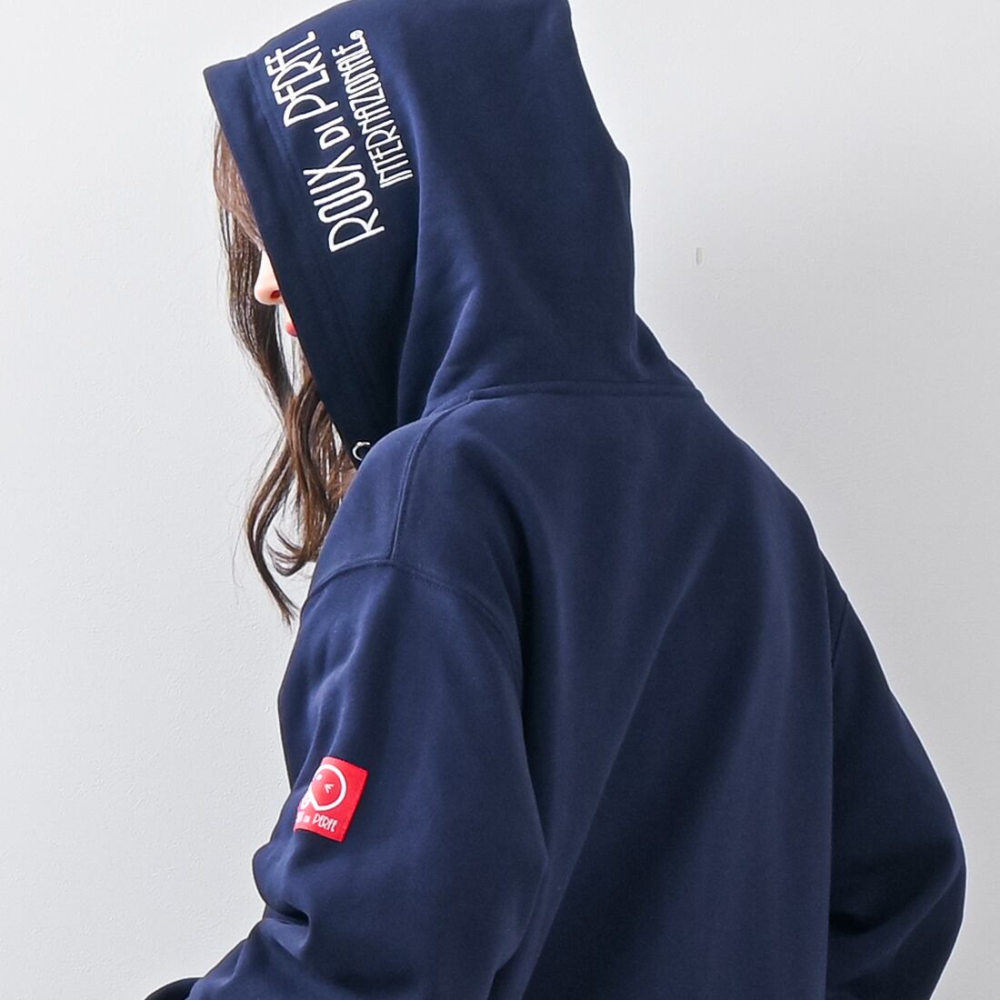 袖にもベーちゃんマーク、フードにロゴ刺繍が入った