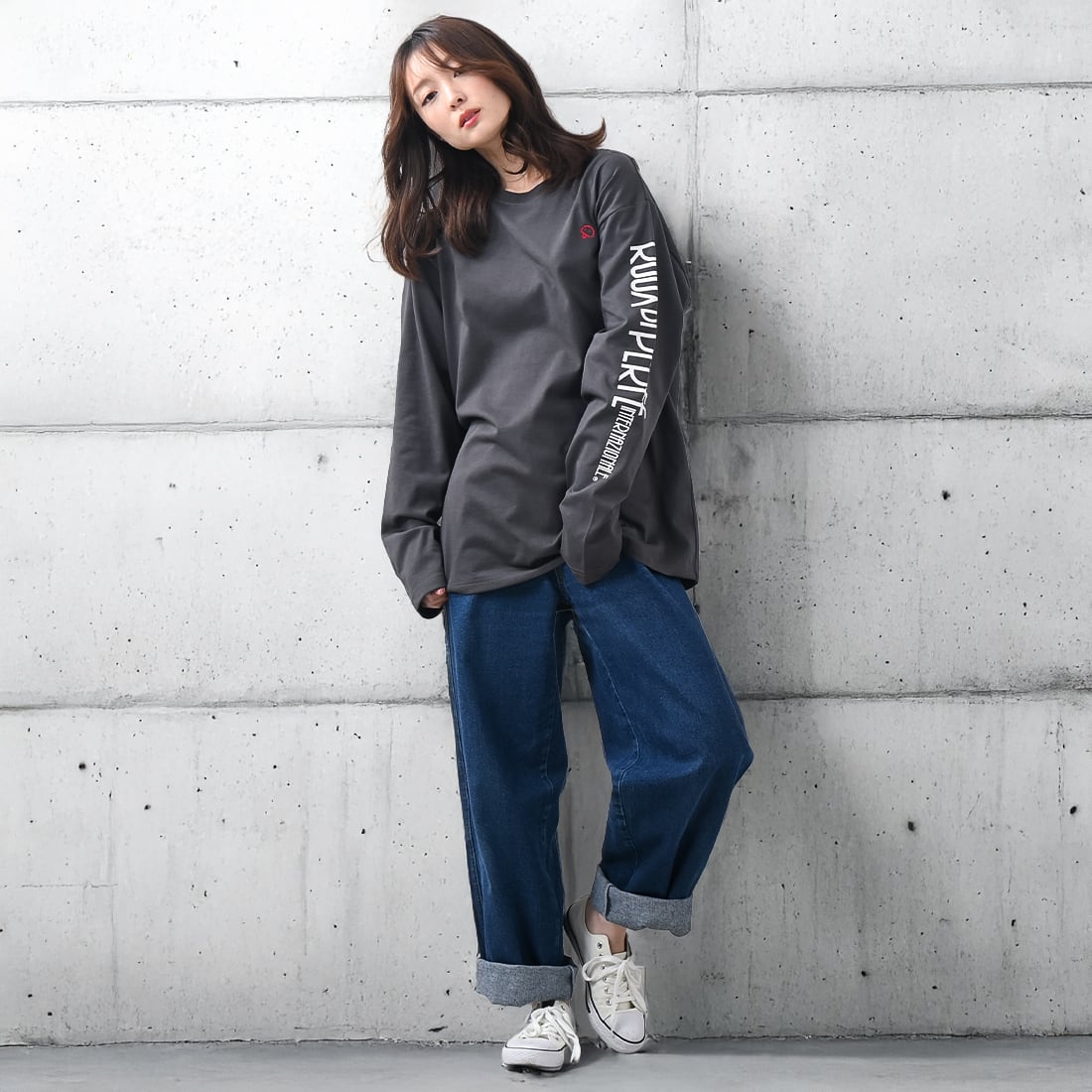 袖のロゴプリントがアクセントの長袖Tシャツ。