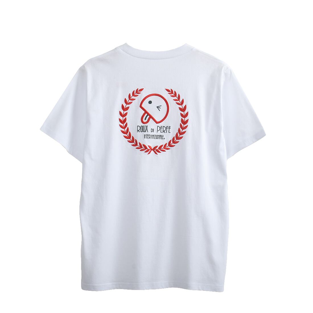 胸元にワンポイントべーちゃん、背中にリーフエンブレムデザインのベーちゃん刺繍が入った半袖Tシャツ。
