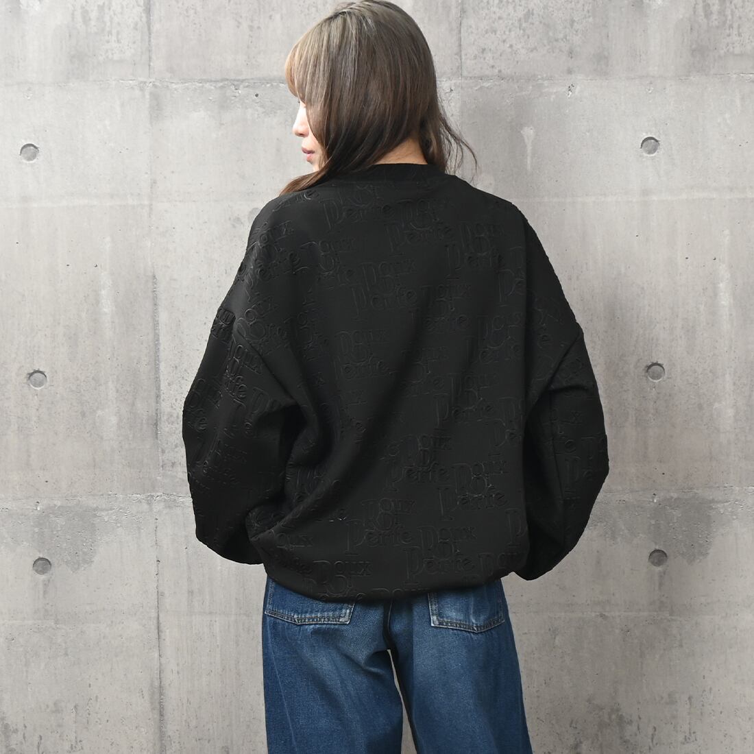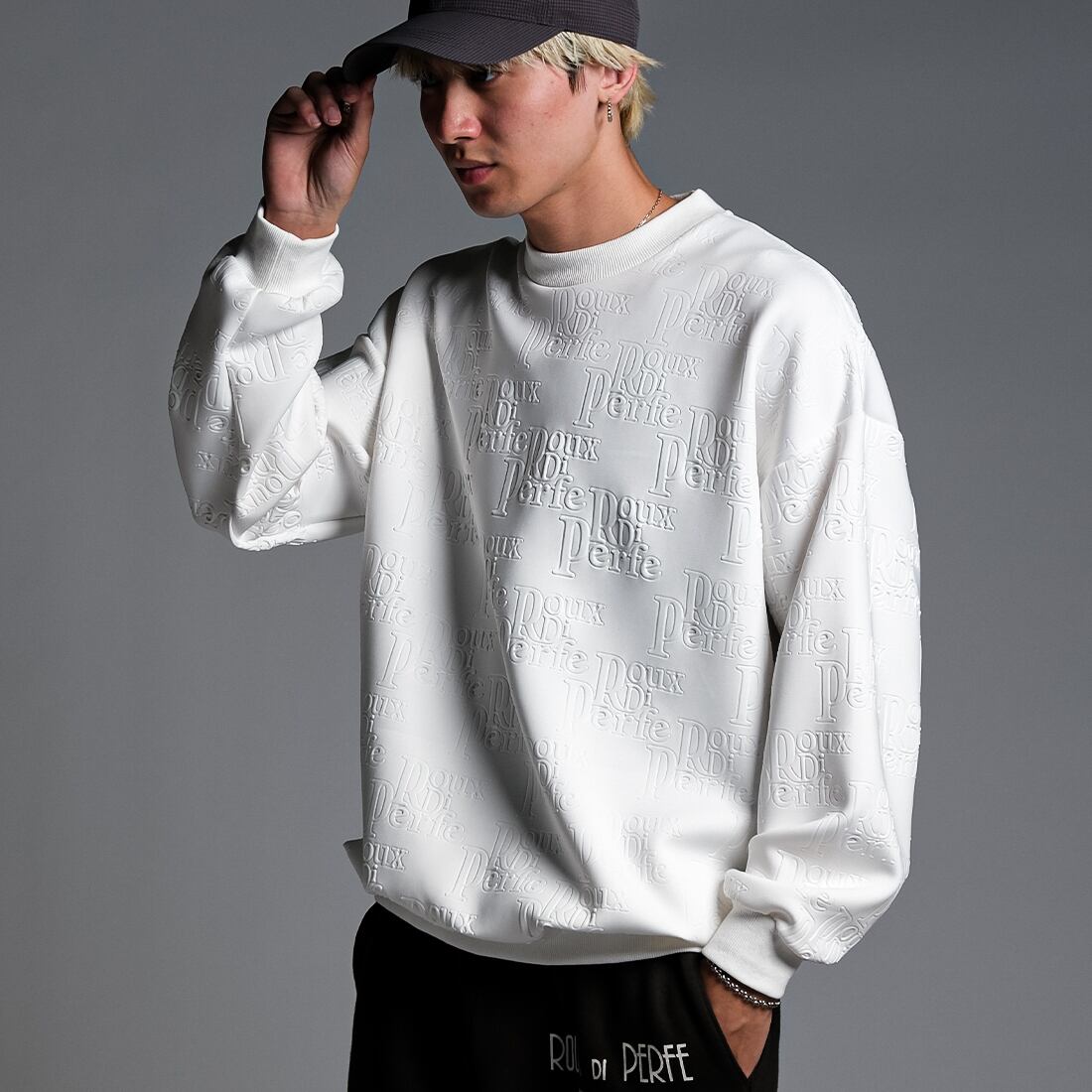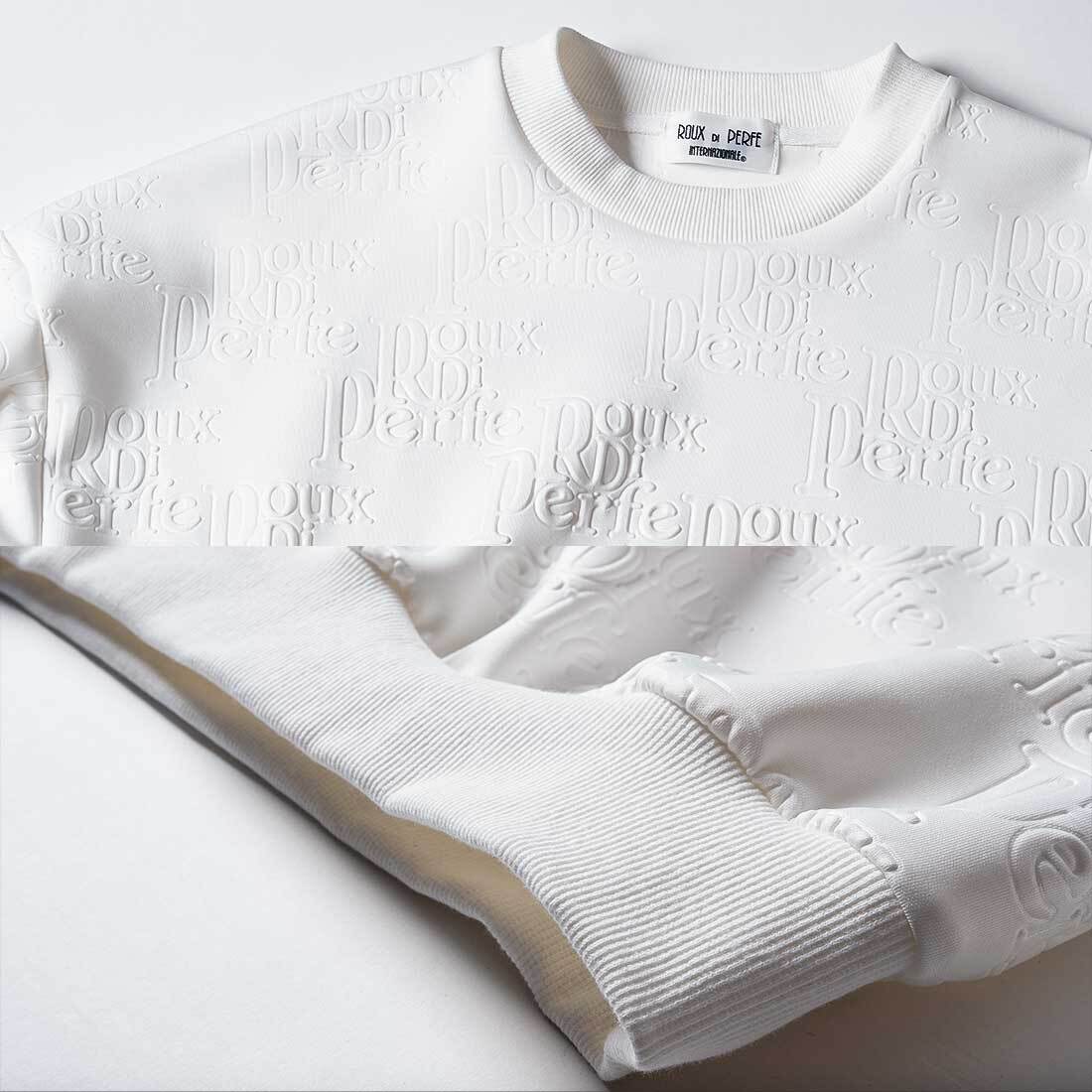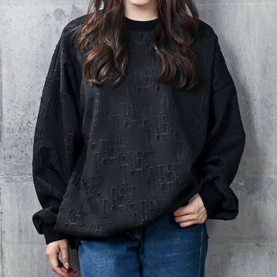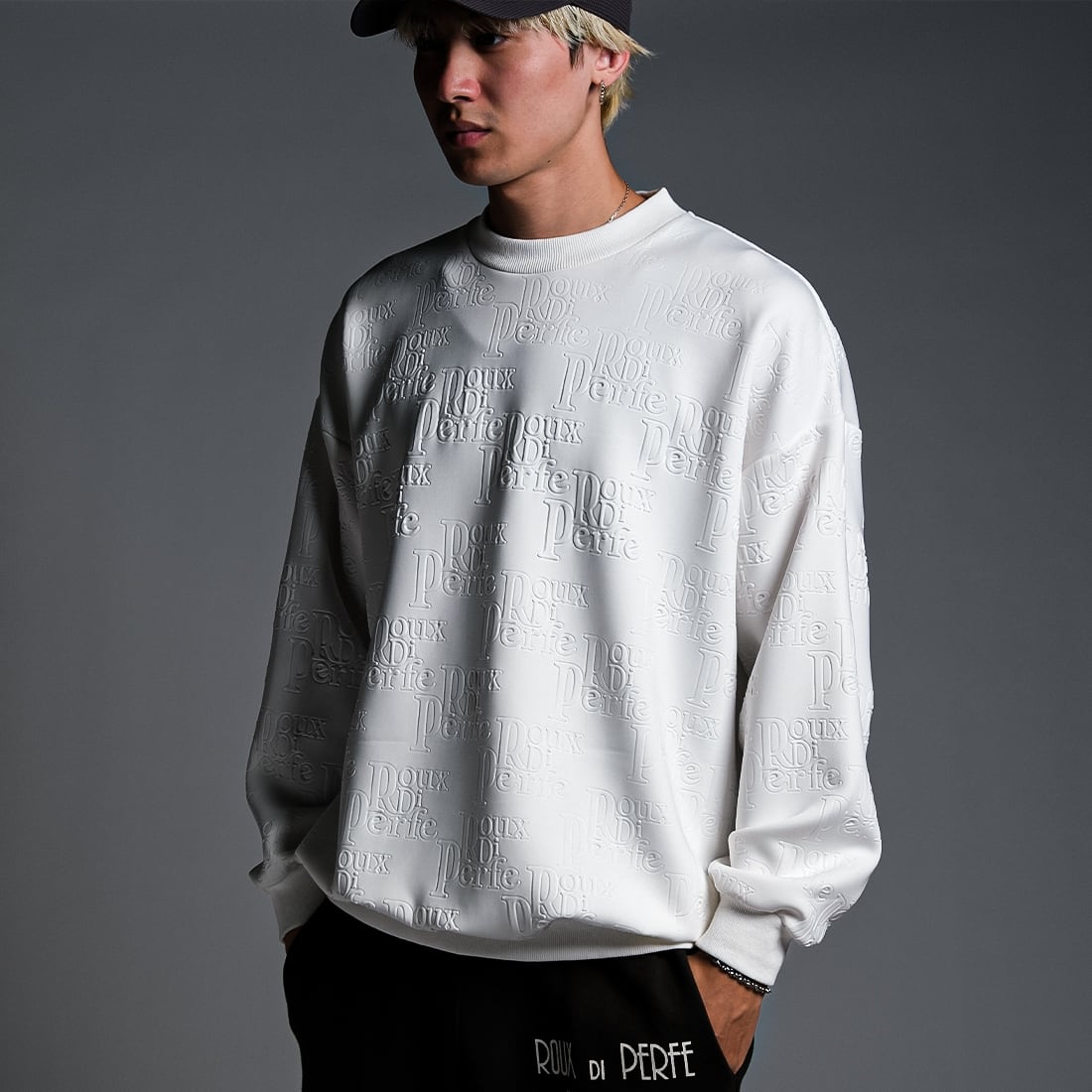 立体的なエンボス加工で「ROUX DI PERFE」のロゴを全面にあしらった、存在感あるトップス。