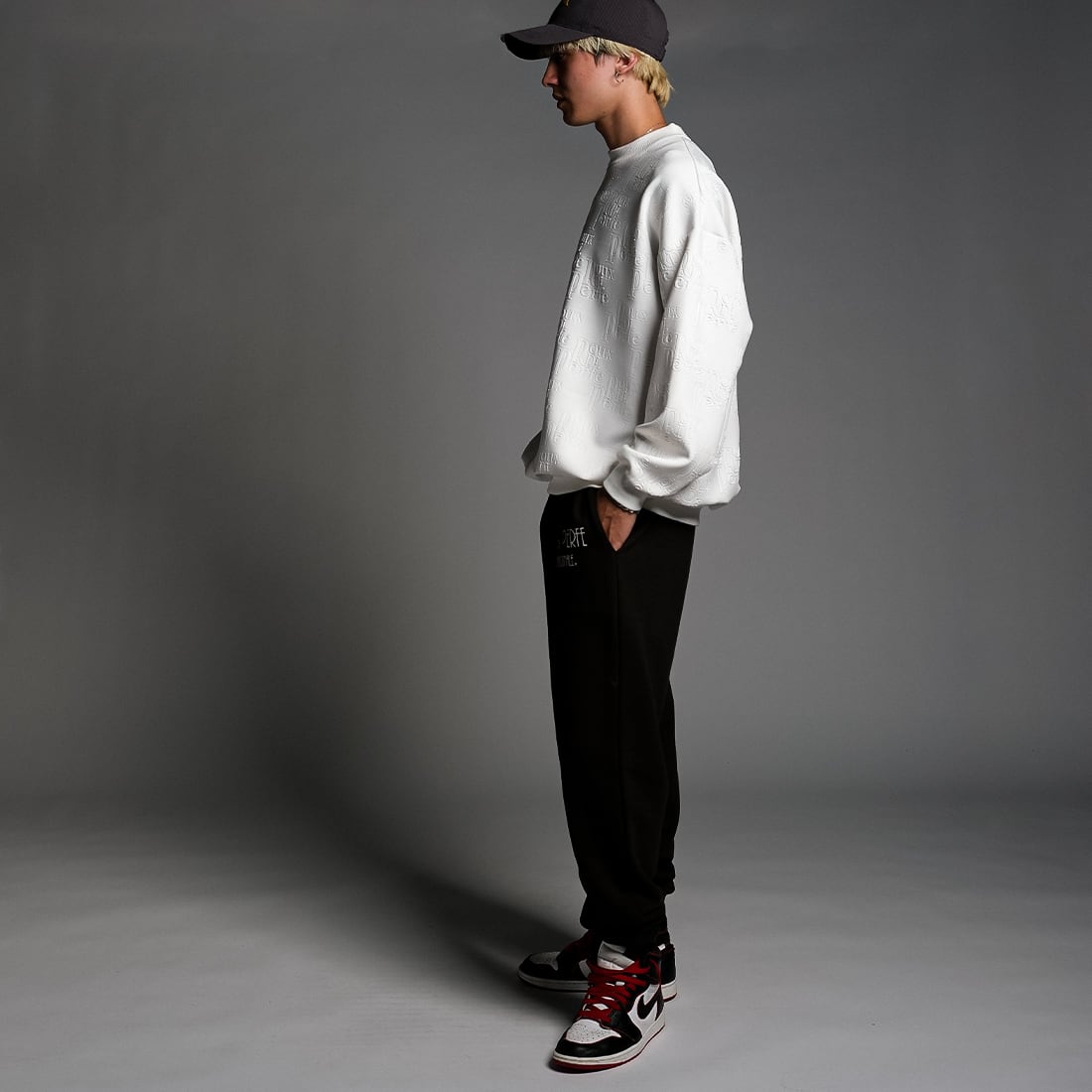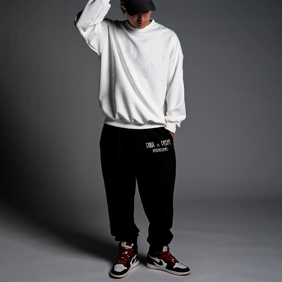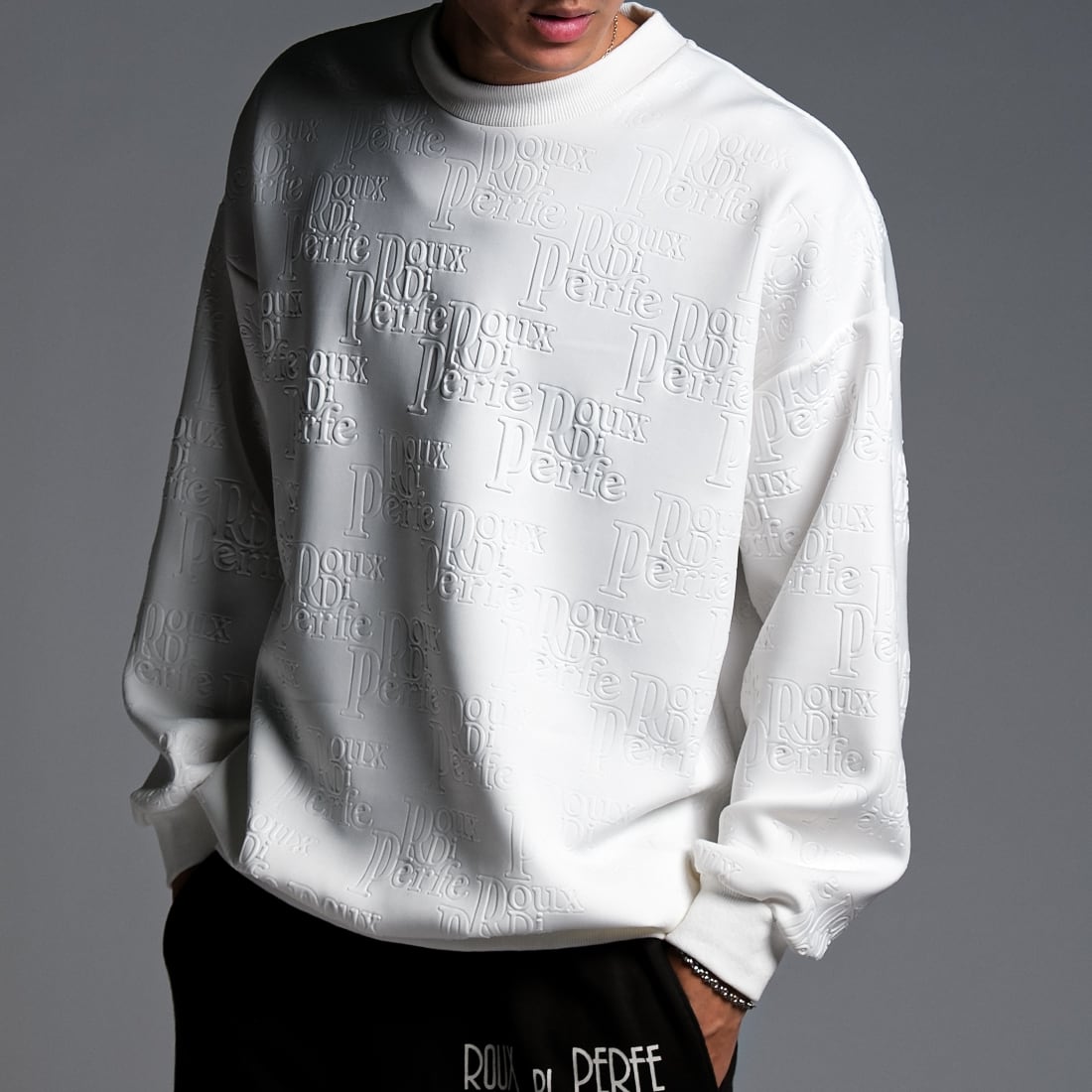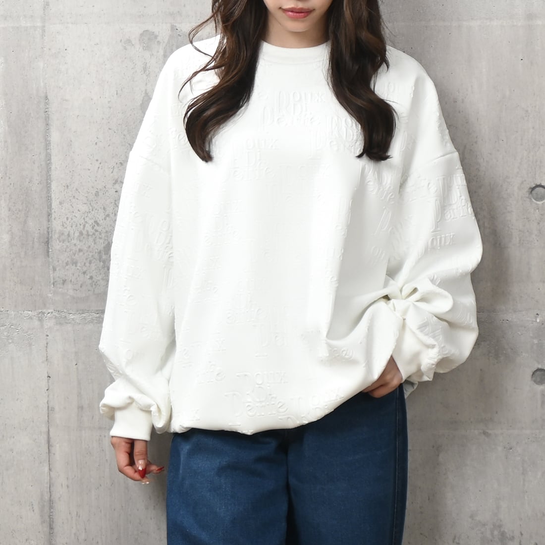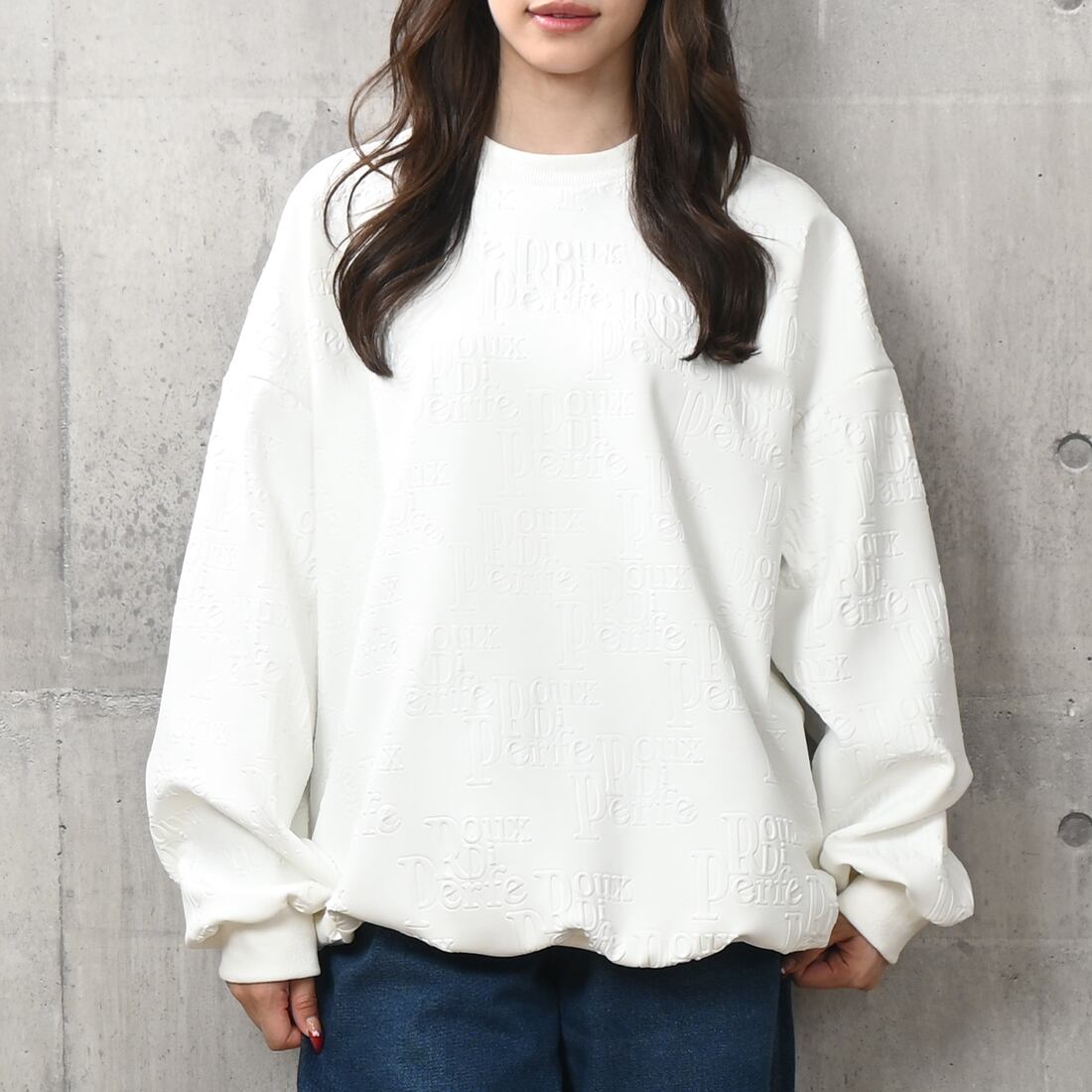 立体的なエンボス加工で「ROUX DI PERFE」のロゴを全面にあしらった、存在感あるトップス。