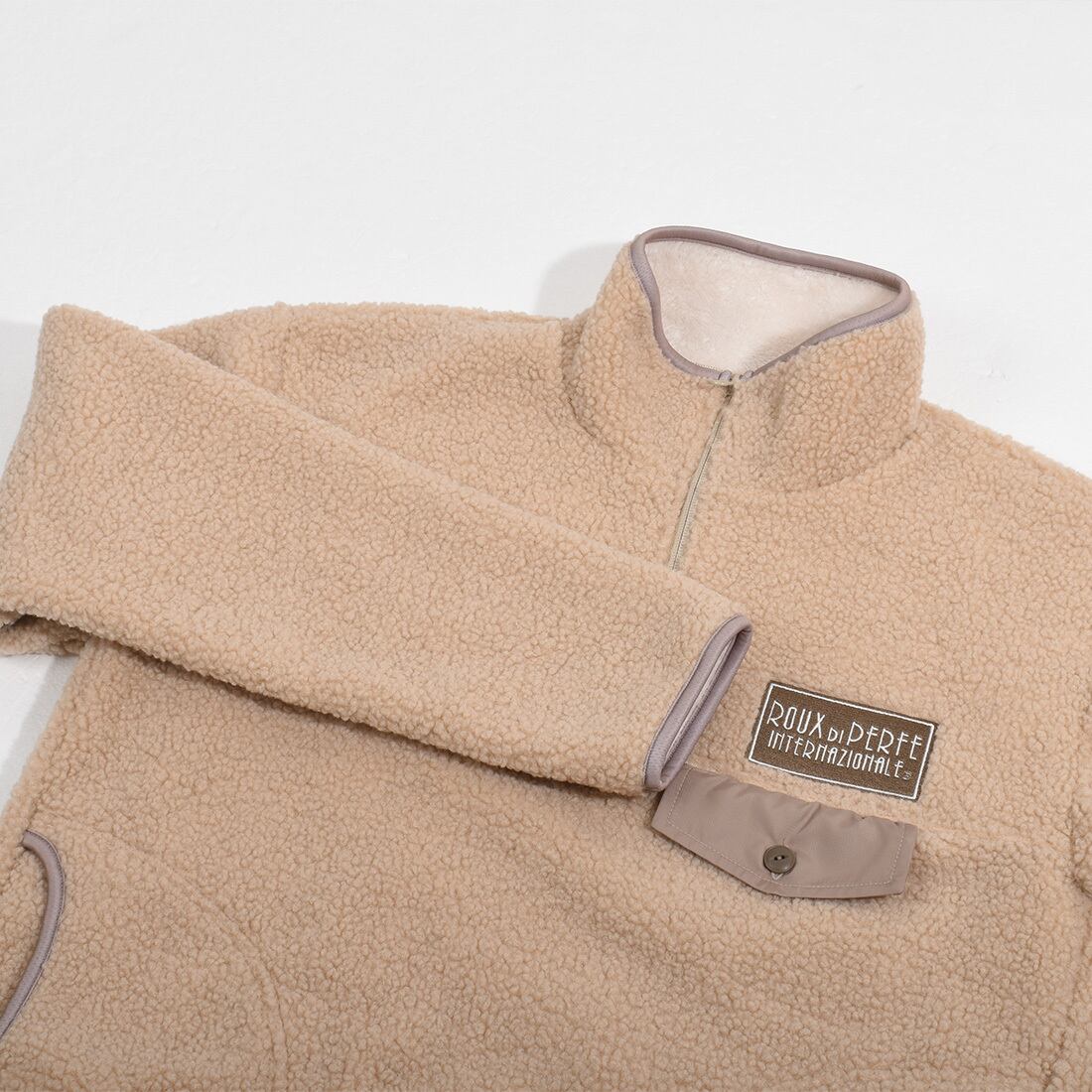 表は柔らかく軽やかなボア生地を使用しているので重さがなく、裏地は上質な風合いの起毛仕様になって暖かく気軽に羽織っていただけます。