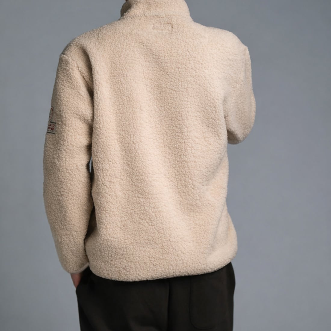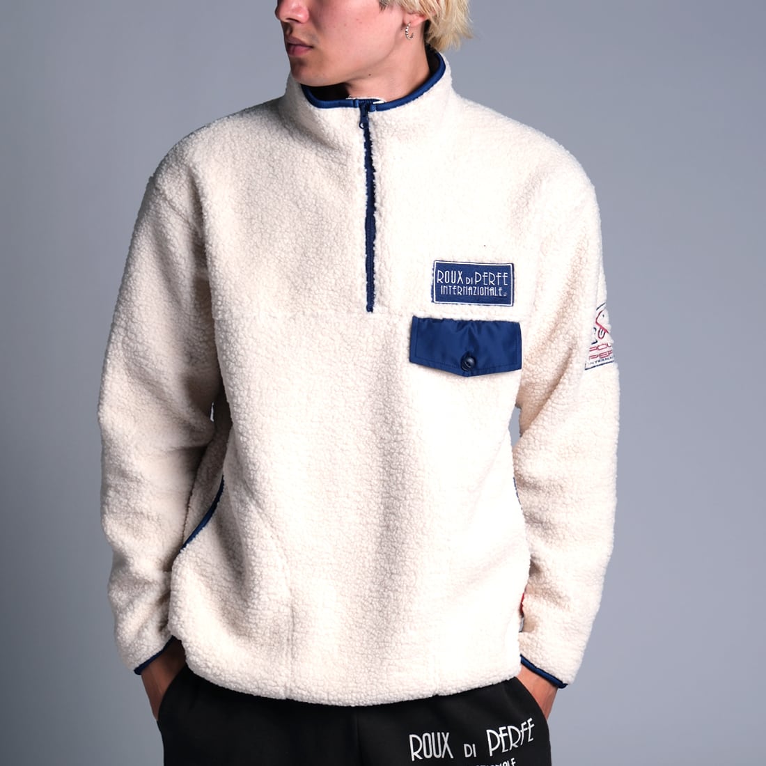 ハーフジップ仕様で首元の開閉が調節でき、重ね着とのバランスが取りやすいデザイン。