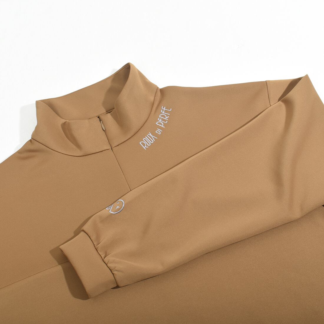 滑らかな肌触りと落ち着いた佇まいが特徴の、スタンドカラートップス。