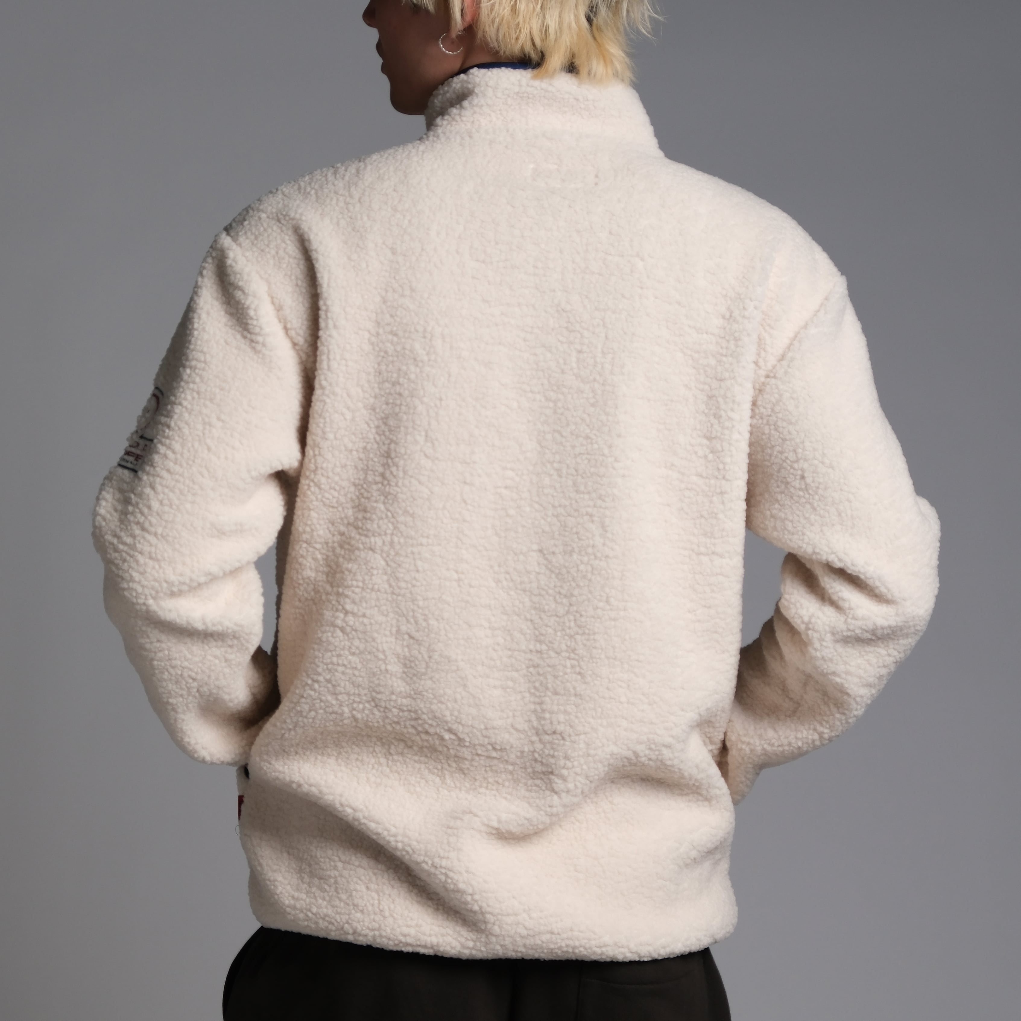 ハイネックなので、ジップを閉めれば首元まで暖かく防寒対策もバッチリ。