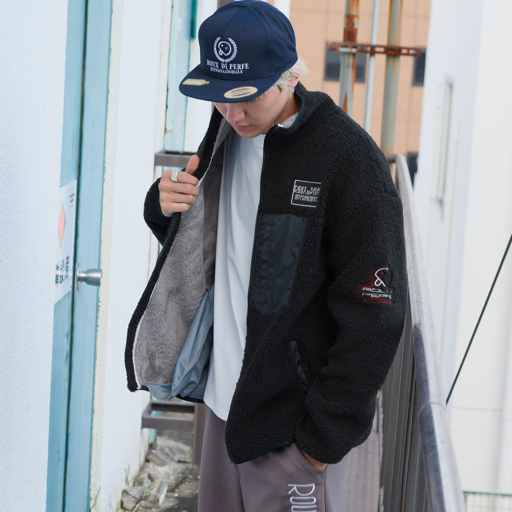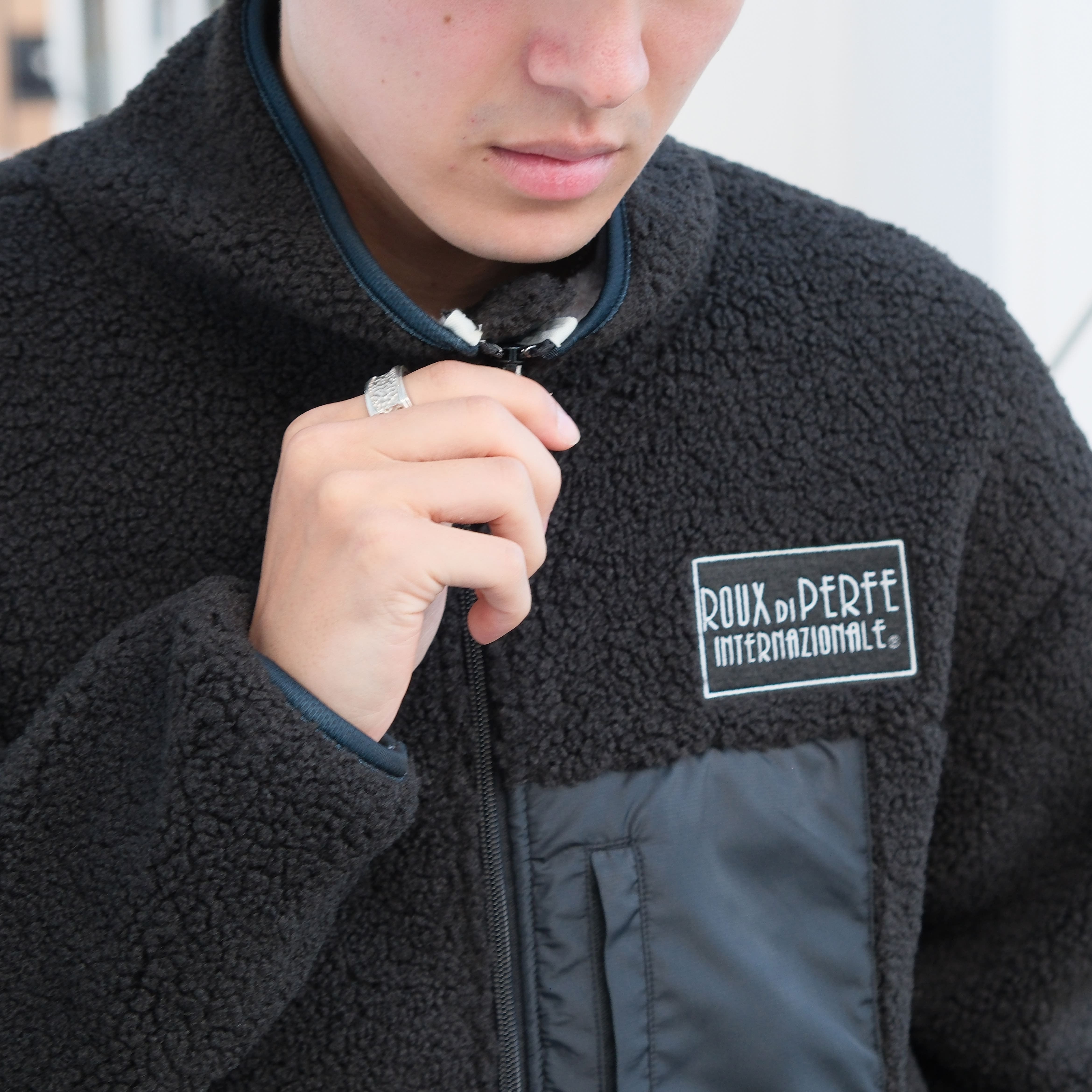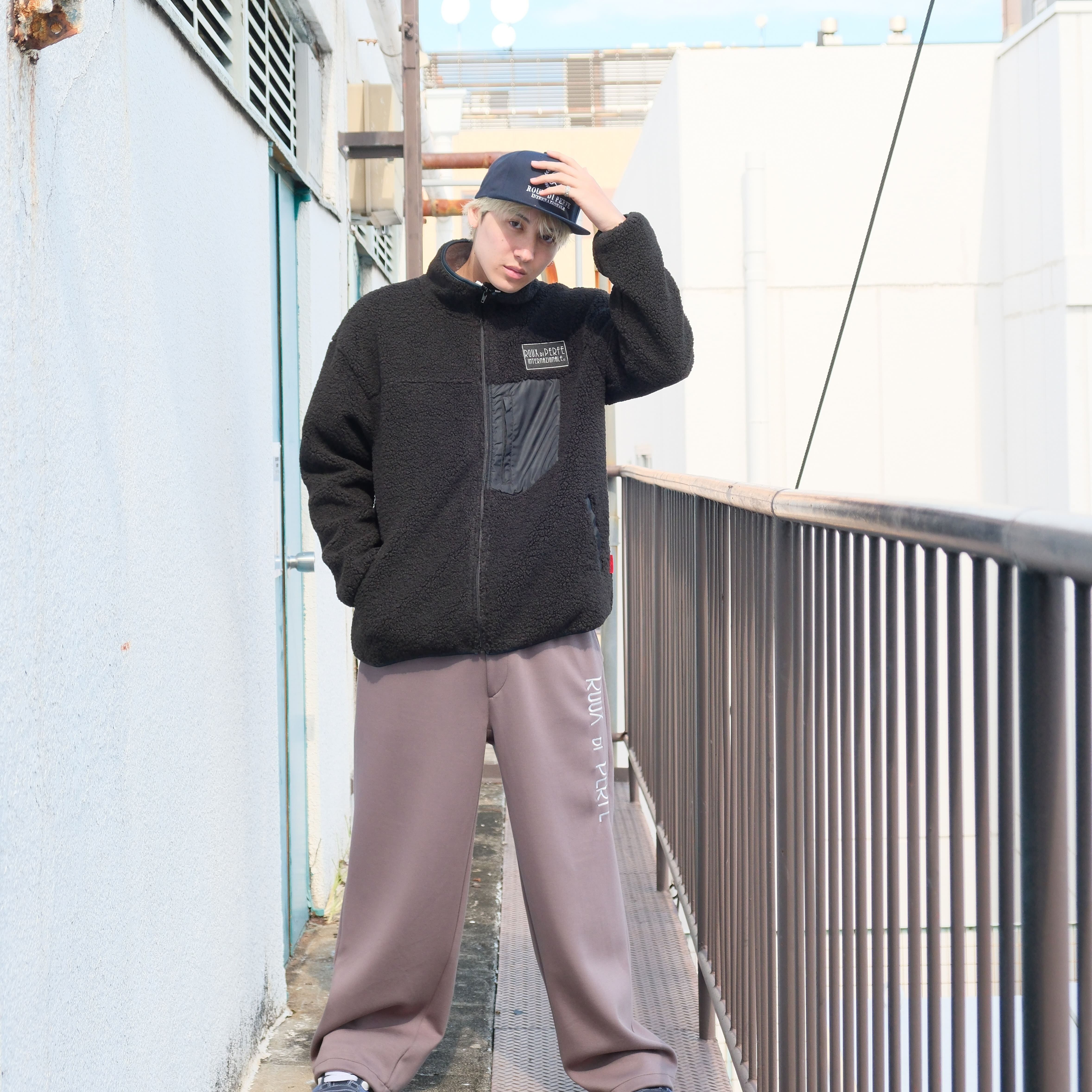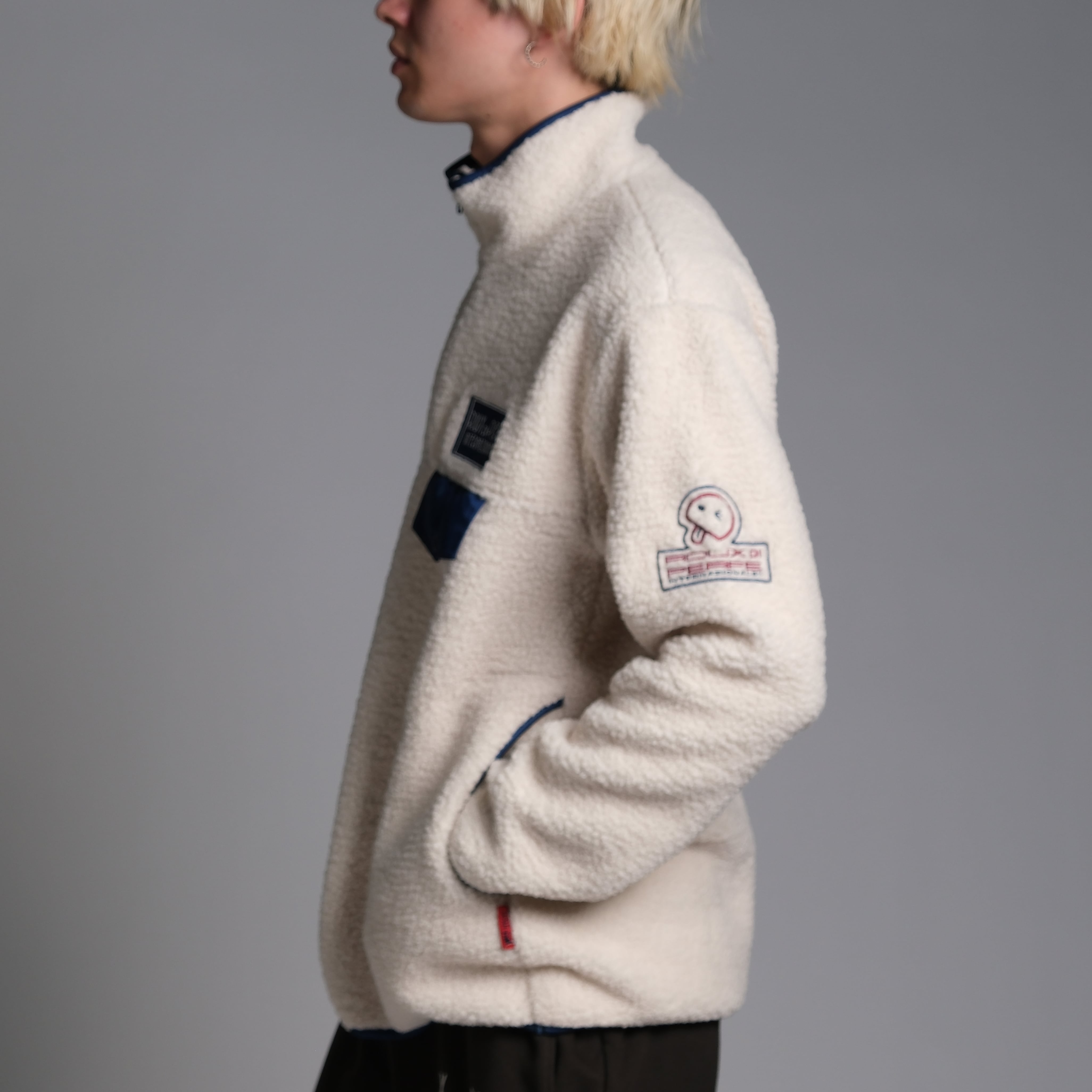 ジップラインとポケット部分のカラー配色がポイントのボアブルゾン。