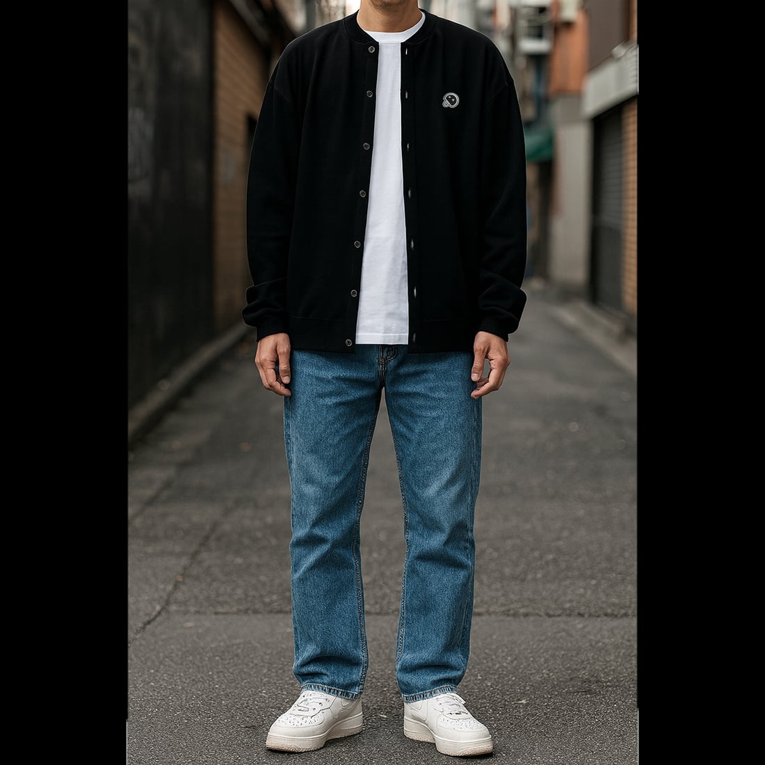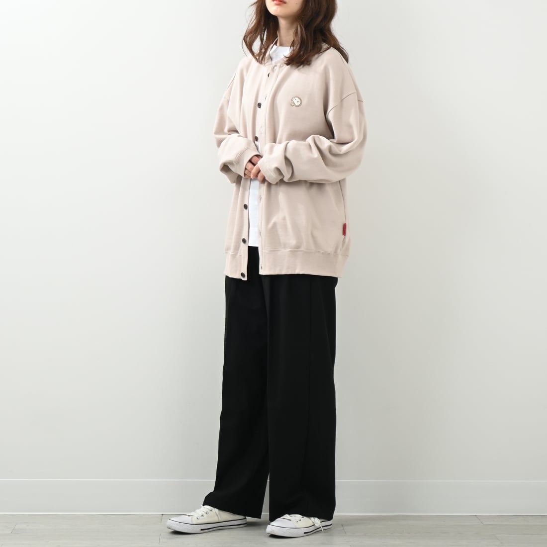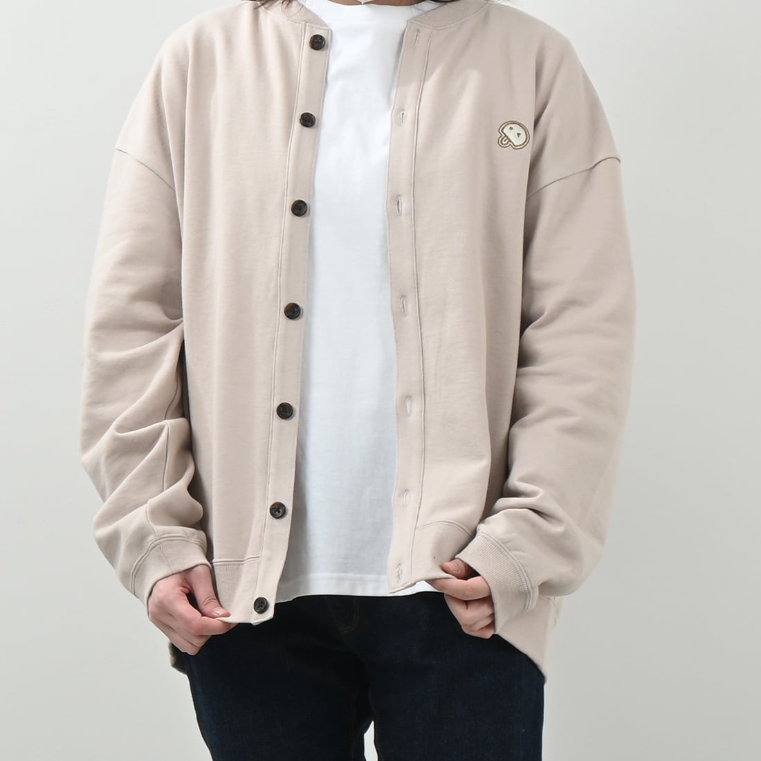 軽く羽織れてシーズンレスに使える、ミニ裏毛素材のカーディガン。