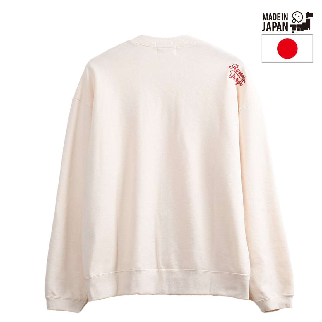 胸元には〈ベーちゃん〉の刺繍、背中の肩部分にはブランドロゴをワンポイントで配置。